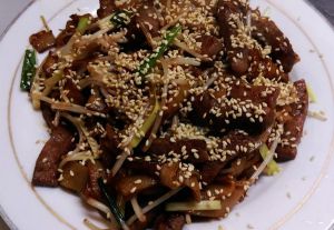 出锅之前加入芝麻。如果想口味再好一点可以放点蚝油。