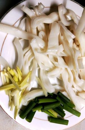 有韭黄最好,没有韭菜切段~小葱切段以后还要竖切成丝~