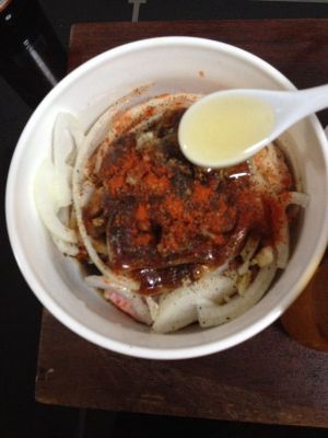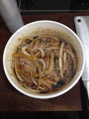 4、调汁 6勺生抽 5勺醋 1勺香油/麻油/橄榄油 1勺料酒 1勺蚝油 1勺白糖 1小勺盐 (份量多就按比例加)