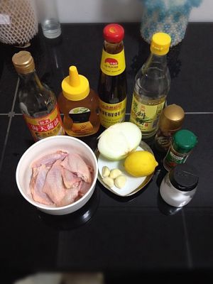 首先,洗干净鸡翅,用叉子在背面扎小洞,放入老抽,料酒,蚝油,柠檬汁,腌20分钟