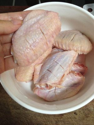 鸡翅中洗净,正反两面用刀切开口子,这样才能更入味哦!