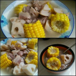 20分钟左右后,关火,注意等高压锅排气后加入莲藕,玉米,再炖5分钟左右,排气出锅。