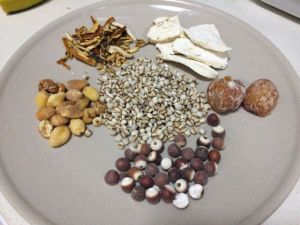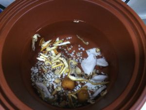 白果、薏米、山药、芡实、陈皮(如果没有可以不放)、蜜枣(蜜枣可以换成红枣)清水浸泡10分钟,洗净。