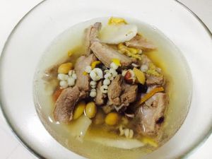时间调到一个小时,等时间到了在按半个小时后,等气压没了开锅放盐,冬瓜薏米排骨汤就好了