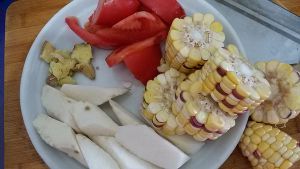将以上食材洗净备用!莲藕一定要刮皮,因为莲藕容易氧化,商贩们都要喷抗氧化剂的水才不会黑!