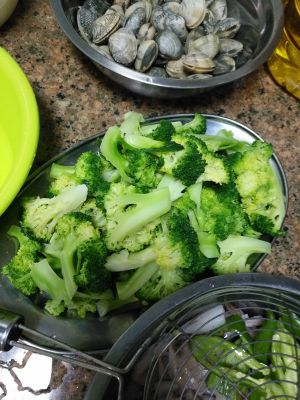 西蓝花掰成小朵,洗净备用,准备好蒜蓉。