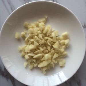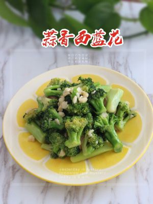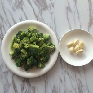 准备食材,西蓝花掰小朵,清洗干净。蒜去皮。