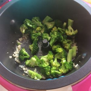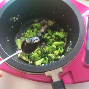 接着放入西蓝花煸炒,加入盐,黑胡椒粉,出锅放点鸡精调味拌匀就可以了。