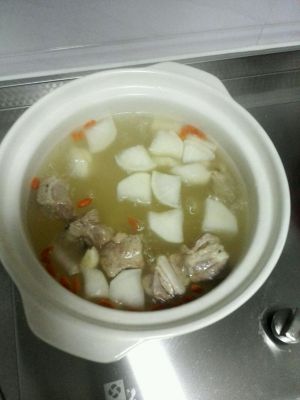 其实很简单的,排骨洗净烧热水焯一下血水洗净备用,山药洗净和刚才焯过血水的排骨一起放炖盅炖3个小时,