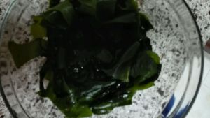 泡发海带,等到汤熬制五十分钟左右下入海带