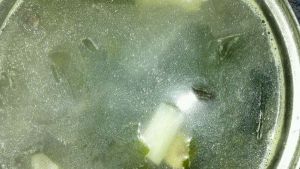 大火煮开后转中小火煲煮45分钟,喝前加入盐调味(加两滴油香味浓郁些)