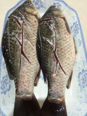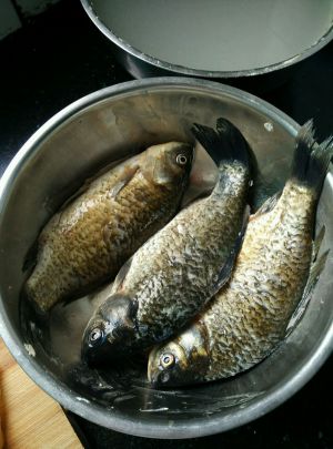 鲫鱼去鳞,剖腹,去腮,清洗干净。特别是鱼腹内的黑膜一定要清洗干净,我个人不大喜欢太 腥味这个一定要仔细些