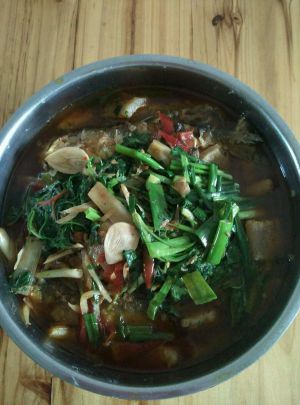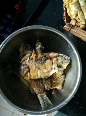 水开后放入煎好的鱼,我还放了一点昨天炸的小鱼,请忽视!!!!