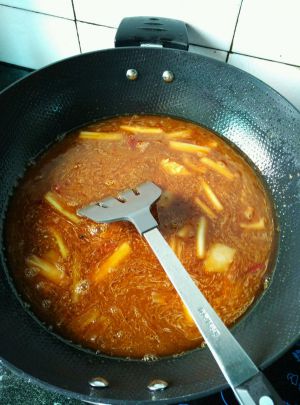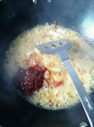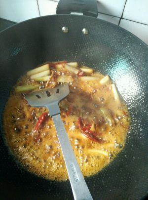 锅中油烧热,加入泡椒泡姜,大蒜,大葱炒出香味