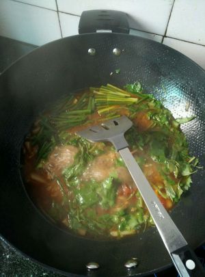把香葱,香菜,霍香切长段,放入汤中,烫一下就好了
