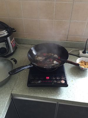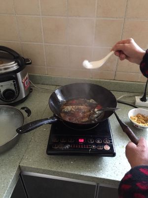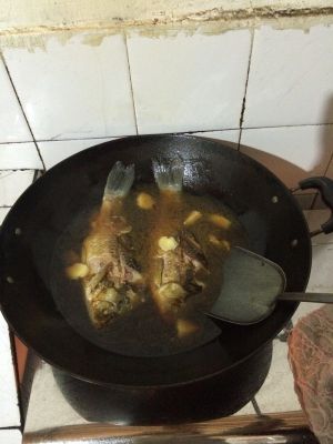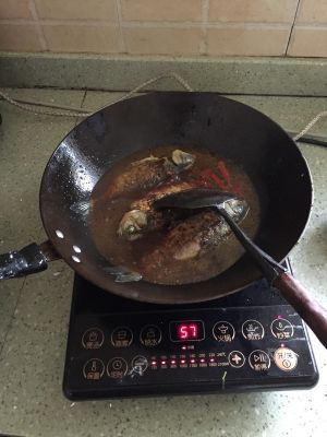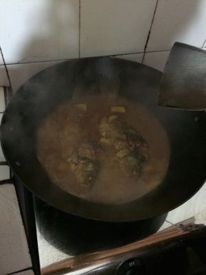 锅内放油,6分熟的时候把葱花大料姜片辣椒放进去爆锅,小火把鱼放进去煎一会,淋上料酒,酱油,在放入开水,开锅后转入中火炖10分钟。可以少放点豆瓣酱。个人喜好