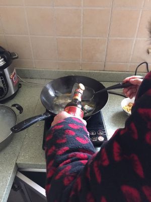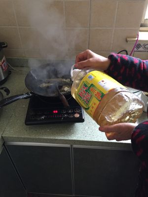 用一小碗把料酒,醋,生抽,耗油调和一碗水倒入鱼锅