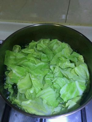 把手撕的圆白菜焯水,熟后捞出放凉备用
