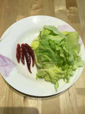 将包菜(也叫白菜,这道菜以牛角白菜最佳,没有的话普通包心白菜也可以)外层叶子撕下几层不要,然后整个清洗赶紧后切开,注意里面不要再清洗了,不然炒出来水分多不好吃,然后用手撕成大小差不多的块备用。