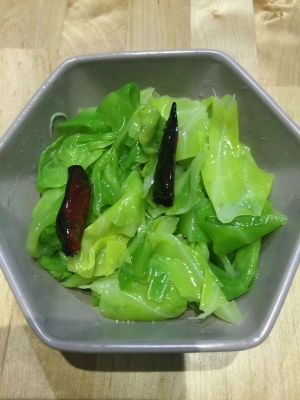 圆白菜放进去,加入盐调味,然后在放入调好的汁,出锅前放入鸡精调味即可。