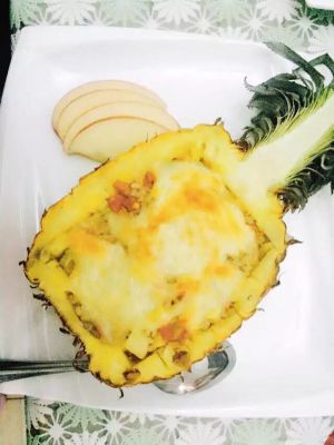 烤箱上下150度预热10分钟,放入菠萝饭,烤5-8分钟。