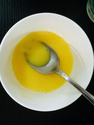 鸡蛋中加入红薯淀粉和少量食用盐(我这个就是在超市买的那种红薯淀粉,感觉没有老家那种自家产的纯)