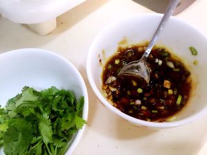 酱料调好配用/酱料根据自己喜好调制,可根据调火锅酱料的方法调制自己喜欢的酱料--本人最近戒辣无放辣椒哦