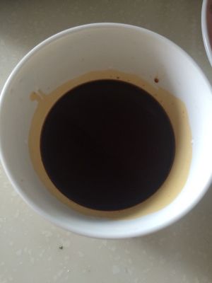 取一空碗,加入生抽,老抽,盐,糖,鸡精,淀粉加凉开水拌匀备用。
