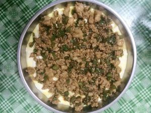 加一勺生抽再撒上一些小香葱,肉末豆腐蒸鸡蛋就做好了。