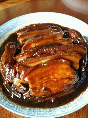 蒸锅之前放入水,放入蒸锅蒸40分钟到一个小时,拿出来找一个大碗把五花肉扣过来