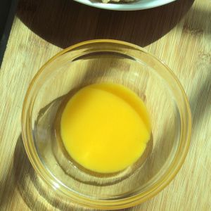 碗内加淀粉盐少许,植物油少许,水,抓匀,加入肉片。