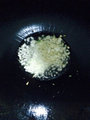 锅中放油(少点)烧至五成热加入蒜末炒香