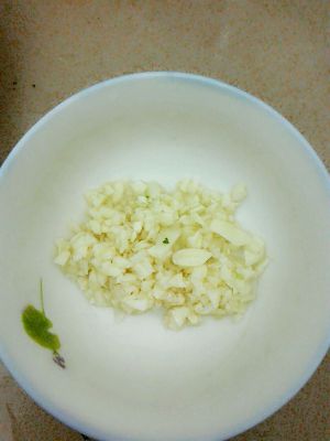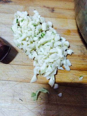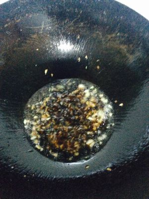 等锅热后,放入油,把切好的蒜沫倒入,炒出香味,注意火太大蒜就糊了,注意火候,然后把之前备好的调料倒入锅内,这里会溅一些,要小心!