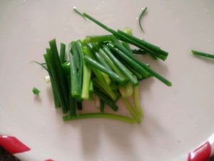把炒好的鸡蛋好切好的葱倒入锅,一起翻炒,然后加入适量白糖,盐,鸡精调味即可