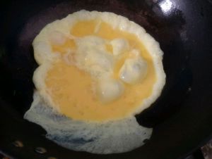 锅内倒入适量食用油,带油热后倒入打散的鸡蛋液