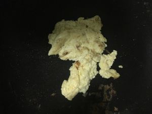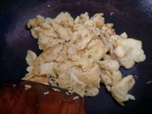快速滑蛋,我个人喜欢鸡蛋稍微焦黄一些,马上盛出备用