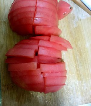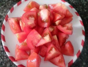 西红柿切块备用.