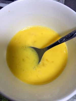 鸡蛋打散,入盐1g.