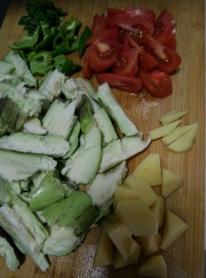 茄子,土豆,西红柿切块,豆角切段