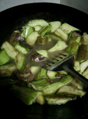 加土豆、茄子煸炒。