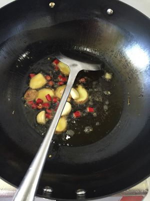 5、热锅内放油,放入姜丝,蒜片,小米椒爆香后,放酸菜炒,炒出酸菜的香味,加入可以没过酸菜鱼片量的清水或高汤,至水开后放入鱼片,加少许盐和鸡精,待水再次开后,就可以出锅了。