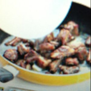 炸完以后捞起来。剩点油炒糖色。放冰糖(或者白糖)。不停翻炒化了以后继续炒一下。加温水煮沸。盛起备用