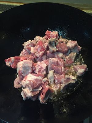 起锅放油,油熟后放入排骨煸炒