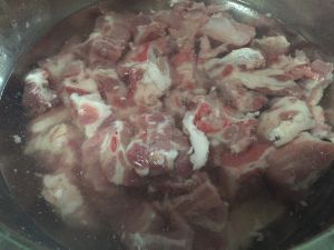 待水开2-3分钟后,将排骨捞出放入盘里,骨汤倒掉。