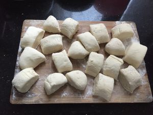 发好的面团比刚揉好的大一倍,手指按下去有弹性,就是好了。(因为我是一个人做,没人帮忙拍照,所以只拍了几张)