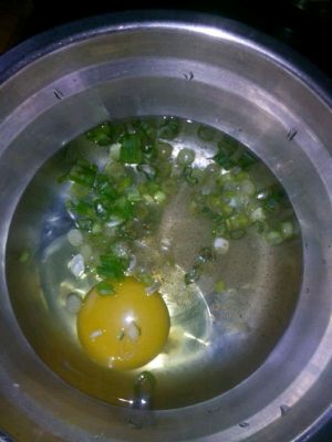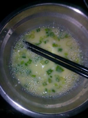馒头切片备用,鸡蛋碗里打匀后放少许水和盐。