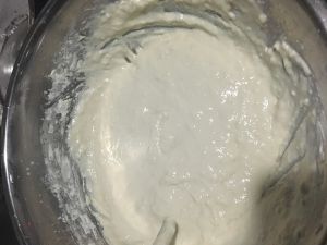400g牛奶加酵母,搅拌均匀,精置2分钟,再加入糖粉,搅拌均匀