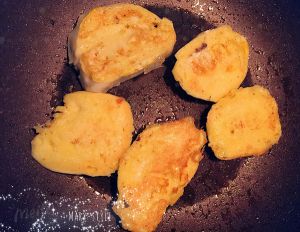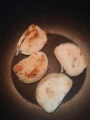 平底锅加热放黄油,用其他油也可以,我比较喜欢用黄油煎东西