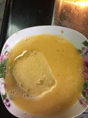 锅里放少许油,馒头片均匀的沾上鸡蛋液,煎至两面金黄就可以吃了 。