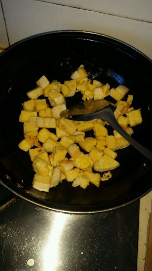 平底锅放油,烧热,馒头条下锅,小火煎至四面金黄